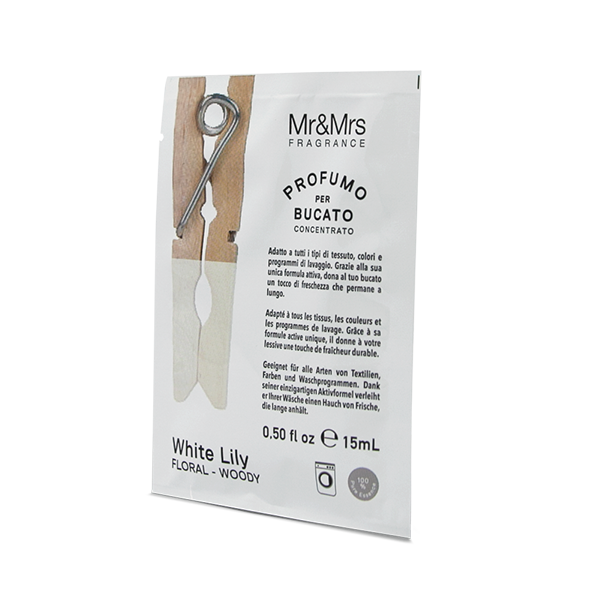 Mr & Mrs. Fragrance koncentriran parfum za perilo, primeren za vse vrste tkanin, barv in pralnih programov.