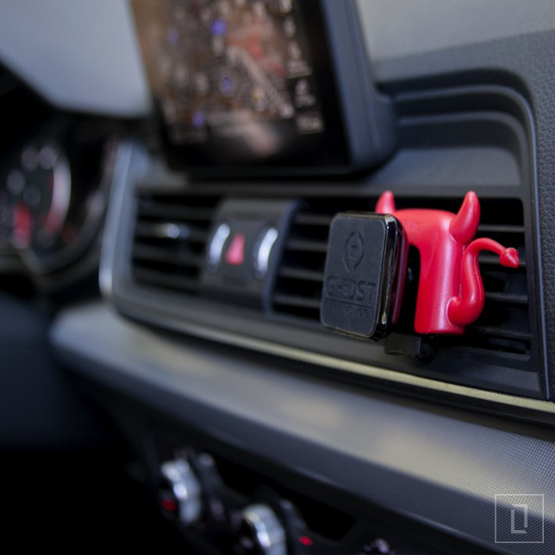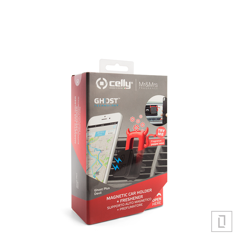 Držalo Ghost deluje na magnetni princip. eno od priloženih kovinskih ploščic preprosto pritrdite na hrbtno stran mobilnega telefon.
