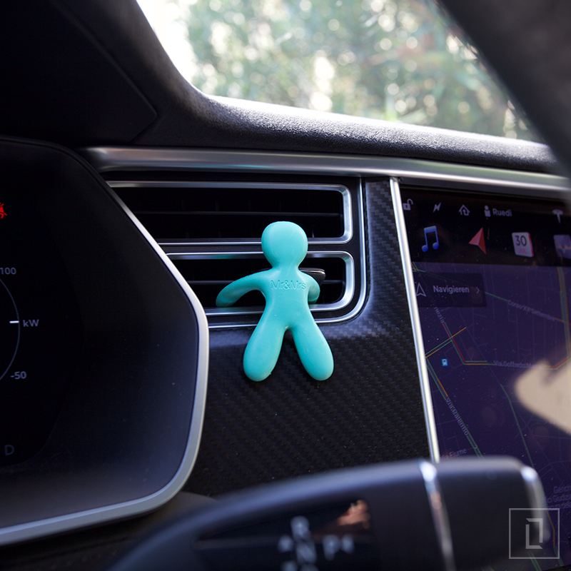 Osvežilec je narejen iz polimera in se prilega zračnikom avtomobila. Ker je vonj ujet v figuro se ob premiku sprošča močnejši vonj.