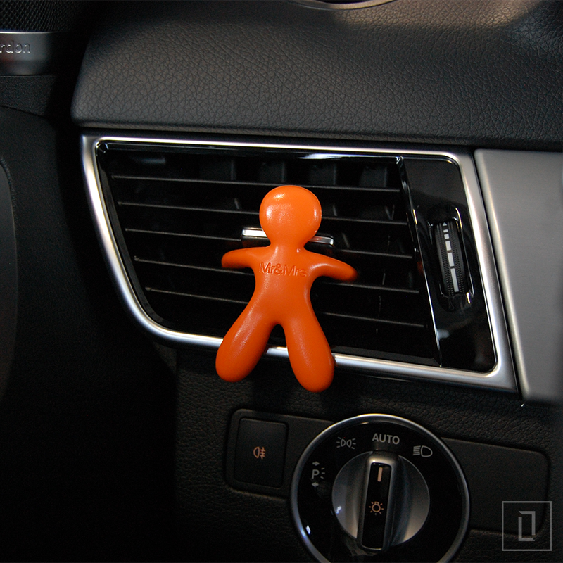 Osvežilec je narejen iz polimera in se prilega zračnikom avtomobila. Ker je vonj ujet v figuro se ob premiku sprošča močnejši vonj.