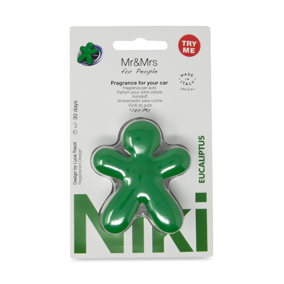 Dišavo Niki vzamete iz pakirane folije in na kromiran (nezamenljiv del) pritrdite EVA polnilo. S pomočjo univerzelne sponke, ki se nahaja na hrbtni strani, lahko dišavo pritrdite zračnik v vsakega avtomobila (tako vertikalno kot horizontalno).