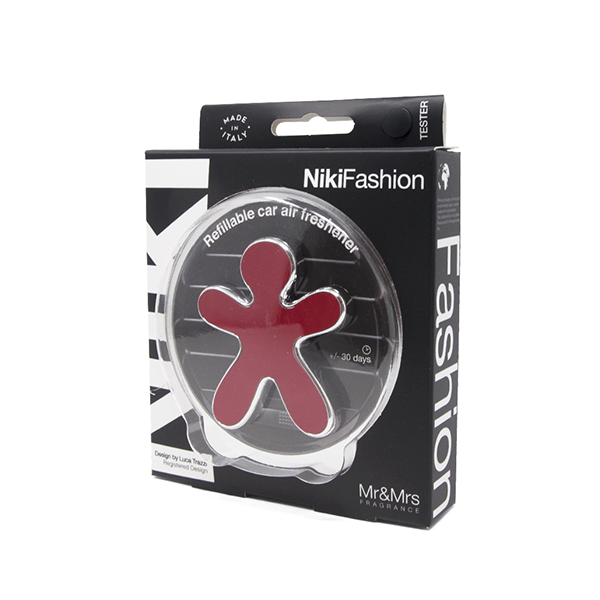 Niki je modni sopotnik za vaš avto, ki je prilagodljiv na vse zračnike avtomobilov. Na zadnjem delu ima polnilo, katerega lahko zamenjate z enim od razpoložljivih dišav Nikijev.