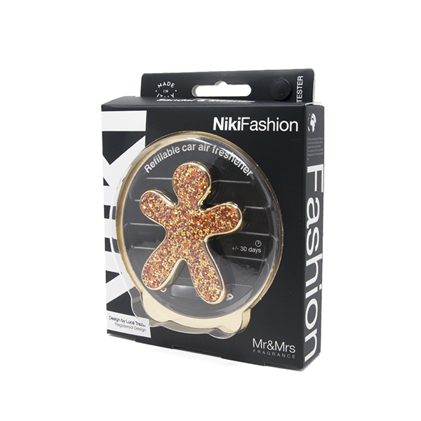 Dišavo Niki vzamete iz pakirane folije in na kromiran (nezamenljiv del) pritrdite EVA polnilo, ki je pakirano v vrečk. S pomočjo univerzelne sponke, ki se nahaja na hrbtni strani Nikija dišavo pritrdite v zračnik avtomobila (tako vertikalno kot horizontalno). Brezalkoholno Eva polnilo lahko zamenjate z enim od številnih različni vonjev polnil, ki jih najdete na povezavi.