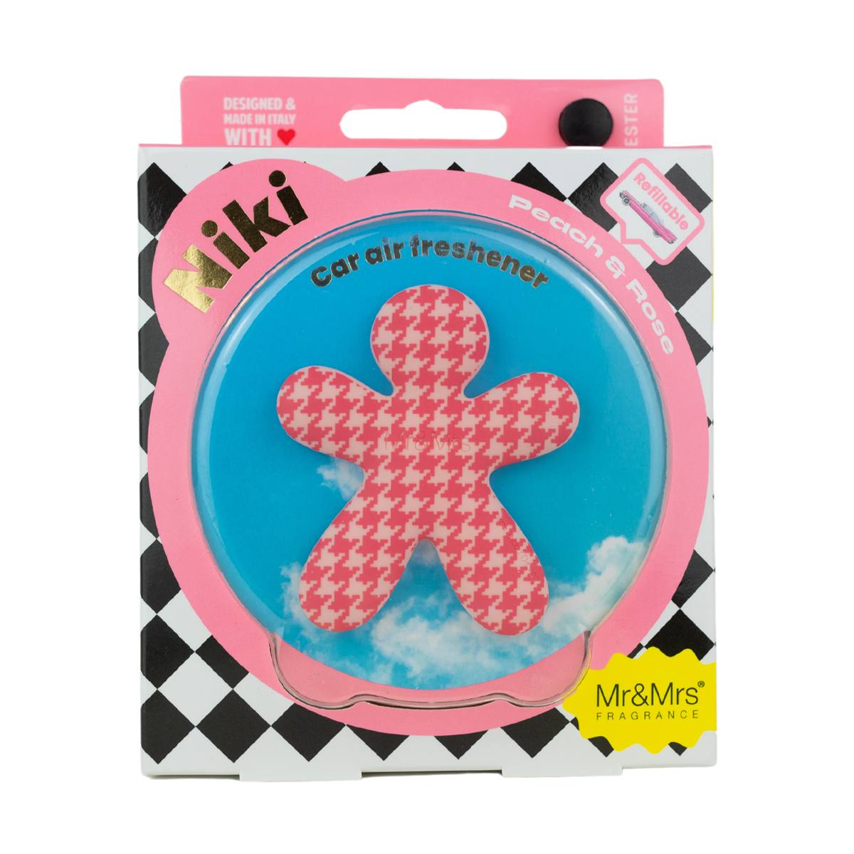 Dišavo Niki vzamete iz pakirane folije in na kromiran (nezamenljiv del) pritrdite EVA polnilo. S pomočjo univerzelne sponke, ki se nahaja na hrbtni strani, lahko dišavo pritrdite zračnik v vsakega avtomobila (tako vertikalno kot horizontalno).