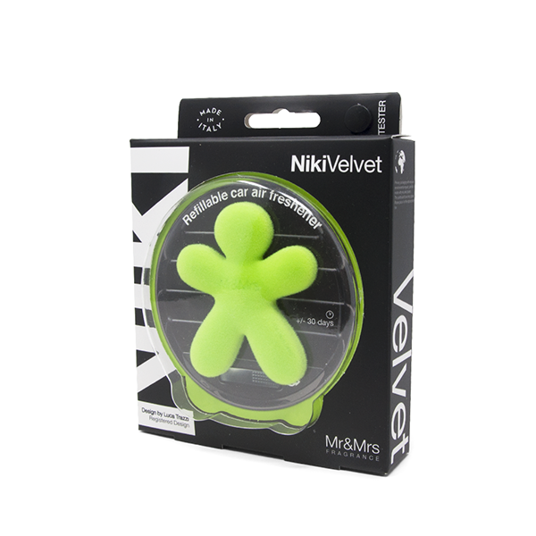Niki je modni sopotnik za vaš avto, ki je prilagodljiv na vse zračnike avtomobilov. Na zadnjem delu ima polnilo, katerega lahko zamenjate z enim od razpoložljivih dišav Nikijev.