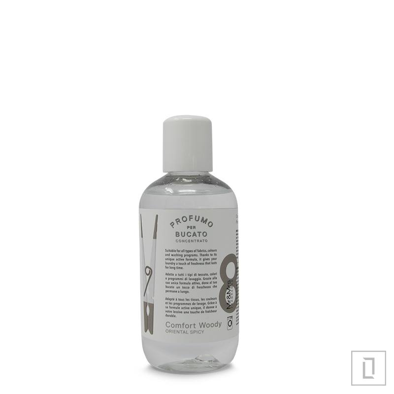 Dišavo Comfort Woody sestavljajo zgornje začinjene note žajblja, bergamotke, srednje note pomarančnega cveta, olibanum, lesne note, spodnje note pačulija, amberja in lesne note.