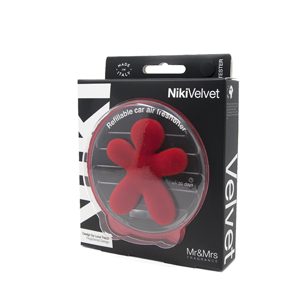Niki je modni sopotnik za vaš avto, ki je prilagodljiv na vse zračnike avtomobilov. Na zadnjem delu ima polnilo, katerega lahko zamenjate z enim od razpoložljivih dišav Nikijev.