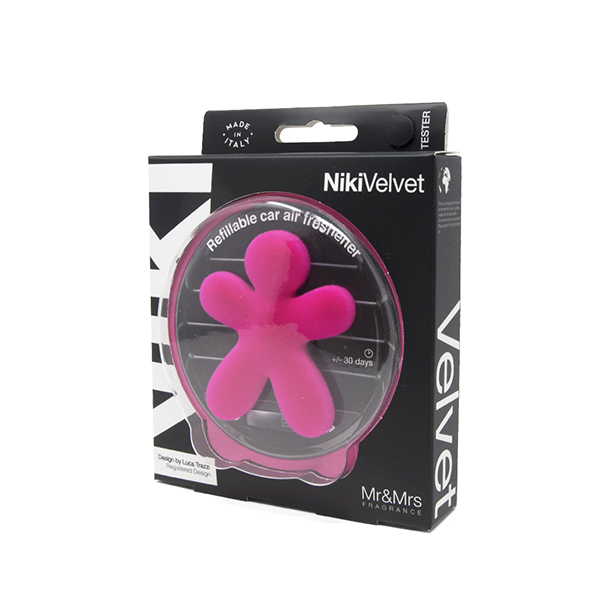 Niki je modni sopotnik za vaš avto, ki je prilagodljiv na vse zračnike avtomobilov. Na zadnjem delu ima polnilo, katerega lahko zamenjate z enim od razpoložljivih dišav Nikijev.
